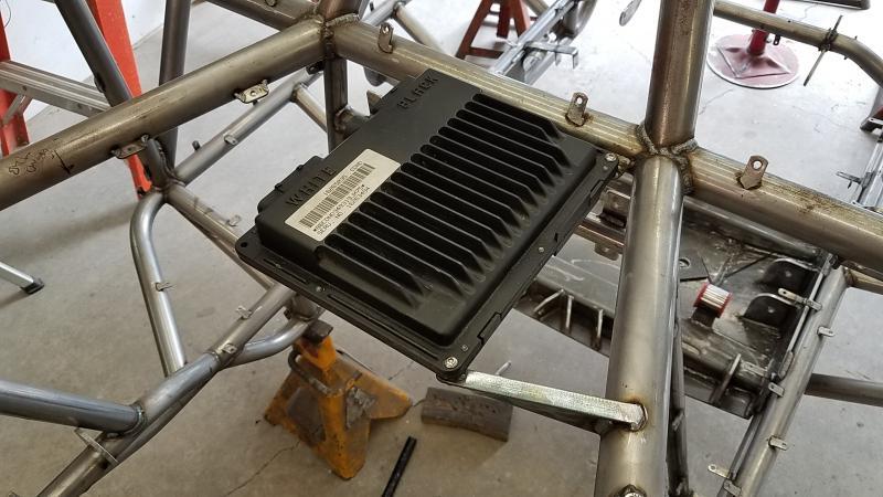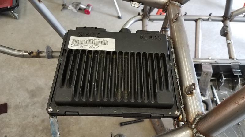 So I had one portion of the pcm mount made but I could not make the other portion until I knew how much room was needed to pull the motor out. I took some measurements and while the motor was coming out I was able to determine how the other portion could be made. So I got that all done...