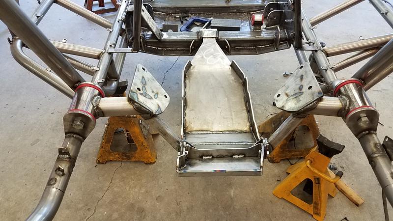 So another thing that needed to be finished was the motor skid and I had an idea how I was going to do the rear mount. Since the front unbolts the rear I made was a simple slide in. Will it work once it gets whacked a few good times? I dunno but I thought it was a cool idea to try. Its also under a bit of pressure to keep it from rattling granted I think the body panels will make a bit more racket than the skid ever can.