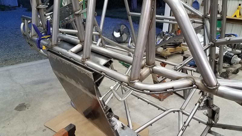 So that only left one thing to be done. Finish welding up a few spots on the belly and do the rub bars on the bottom and side of the chassis. 6 times back and forth and got it all finished up.