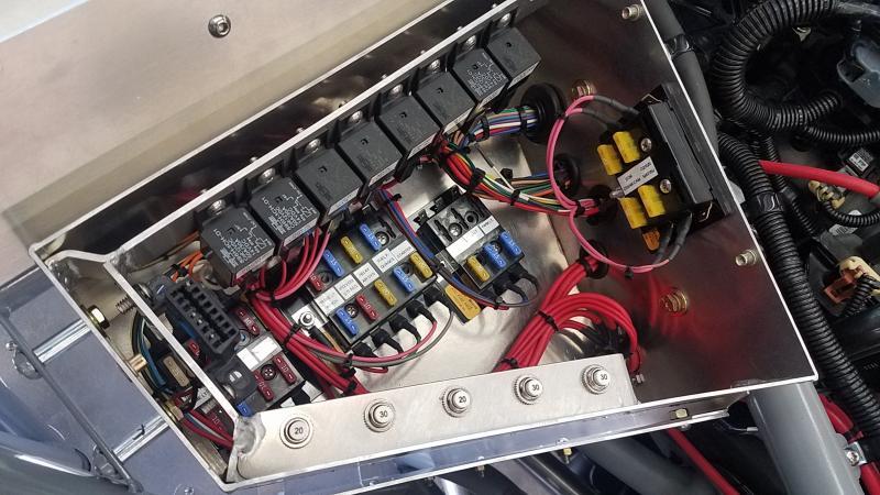 So I had one open 12v circuit at the constant 12v fuse assy so I chose to hardwire the battery tender connector (easy access just in front of the passenger shock tower) and I finished off fitting the electrical center lid.