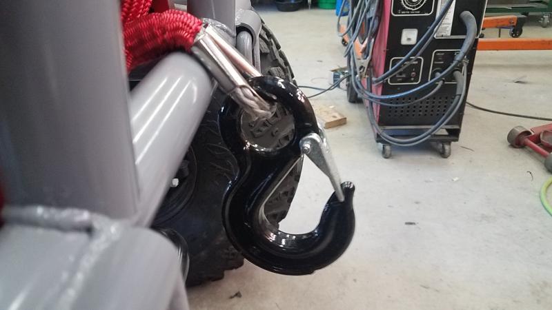 So my buddy matt stopped by and helped my load both winches with rope (rear winch switch is backwards---grrrr,lol).. I absolutely HATE the hooks on the ends and will be cutting them off and going with a D-ring thimble (probably factor 55 prolines)..