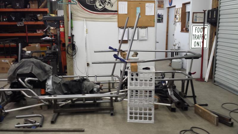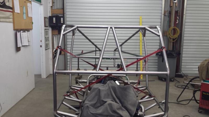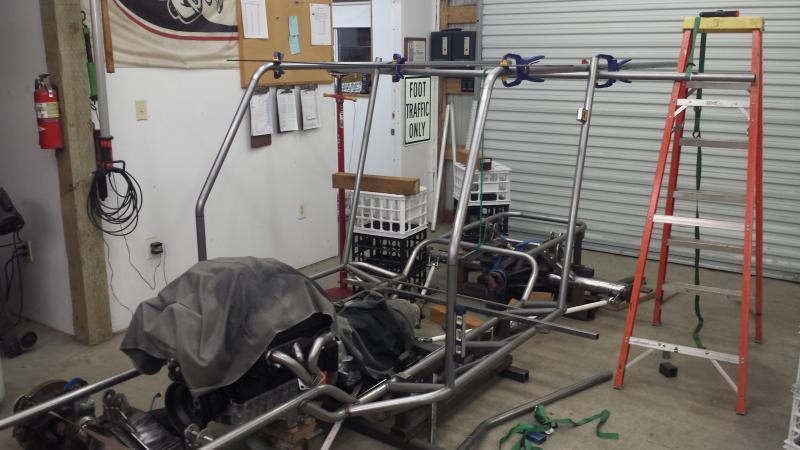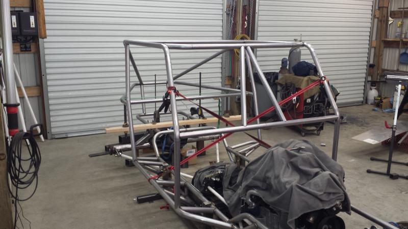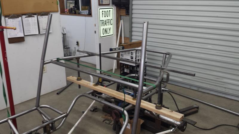 So I got the rear section all setup and the b-pillars bent and tacked into place.