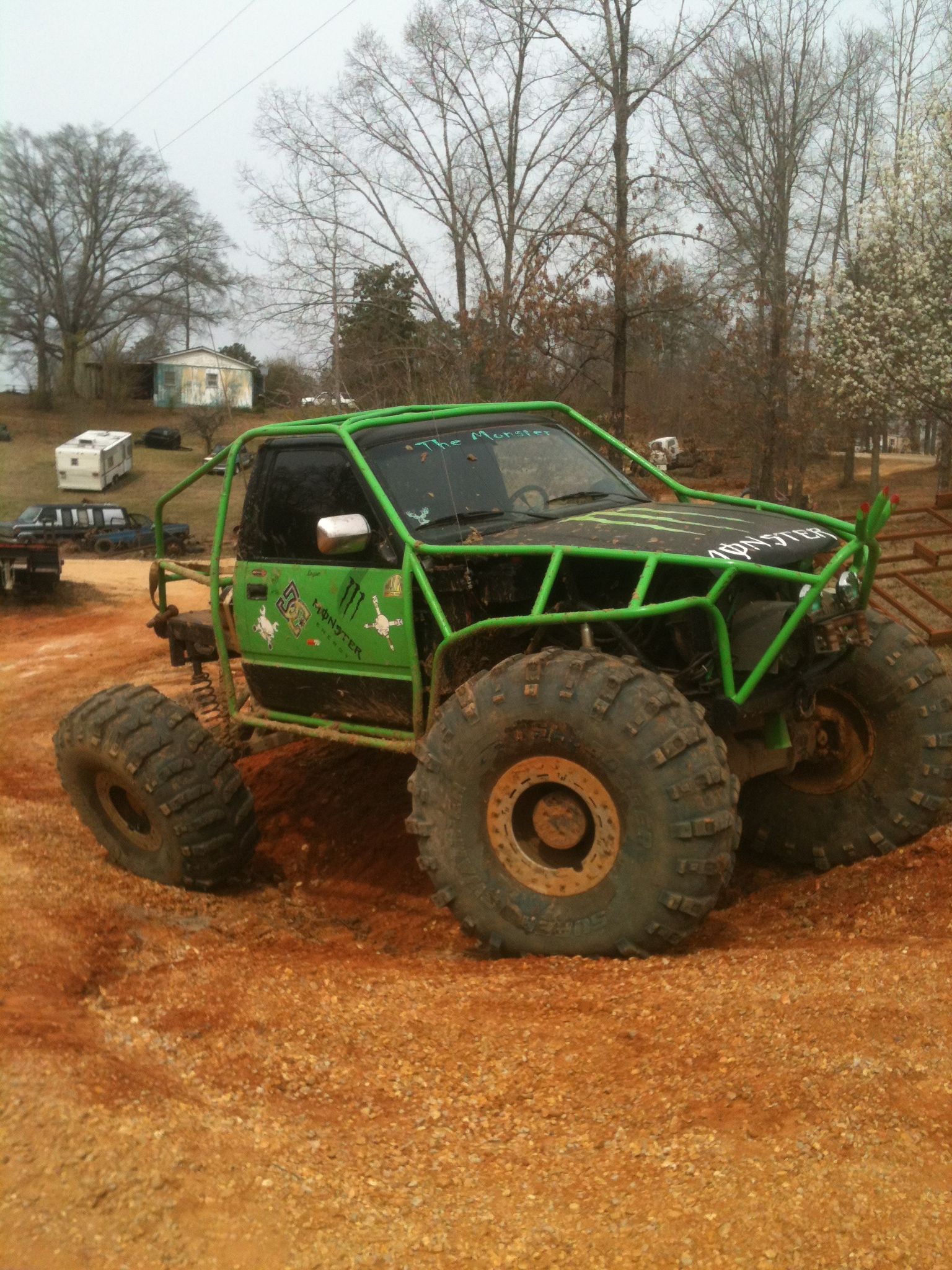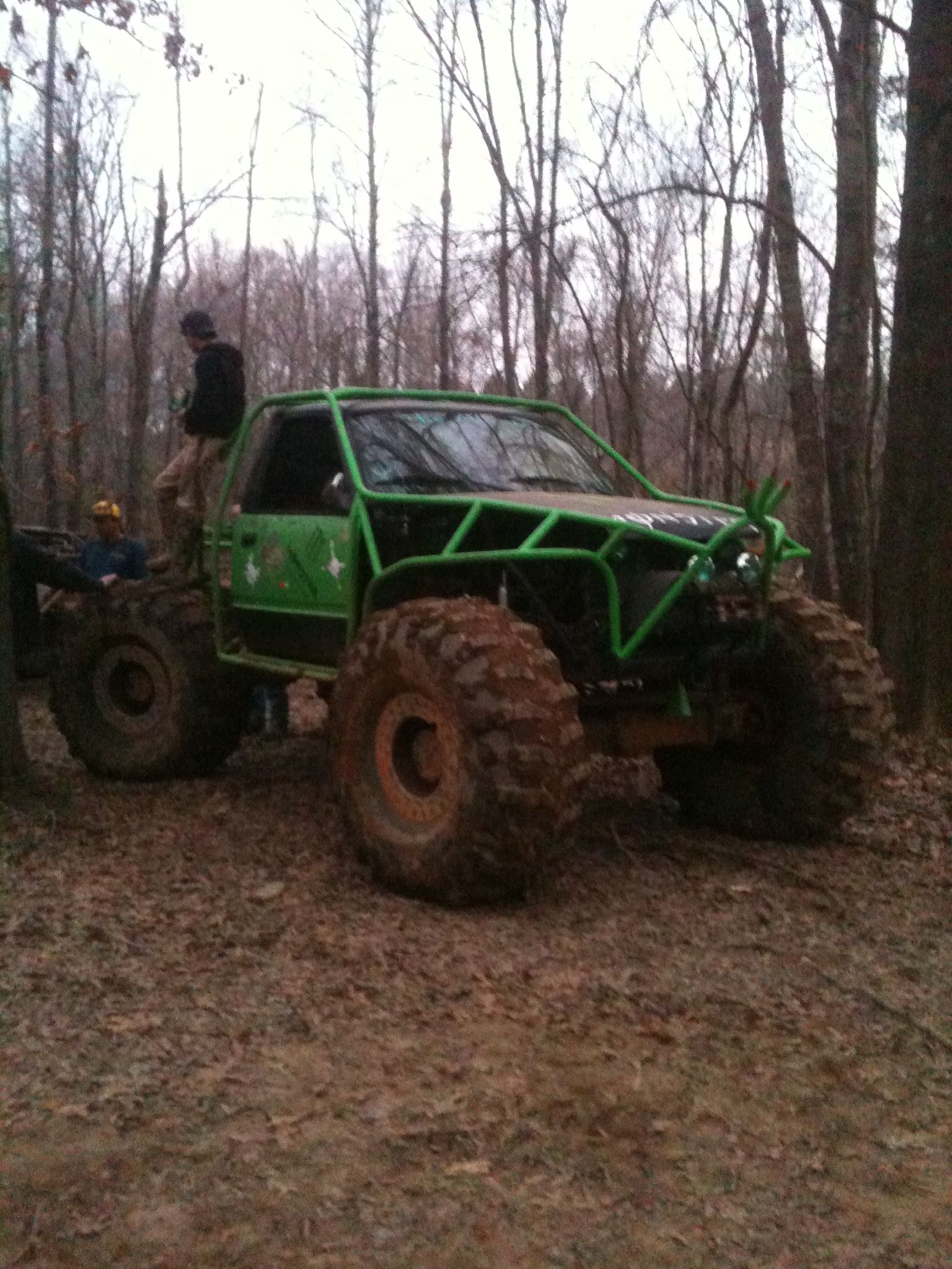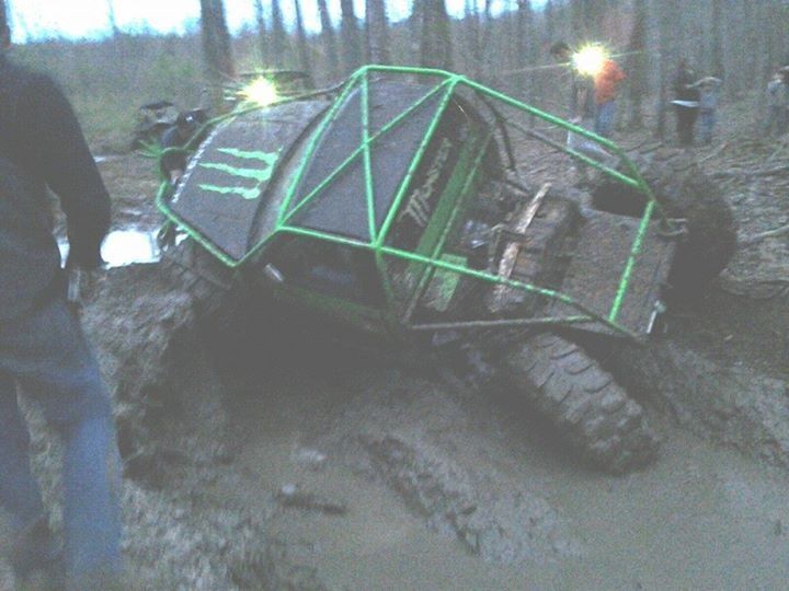 I love the full blown buggies just as much as the next guy. I like to see the homebuilt stuff too. Lets see some of the lower budget firewall buggies and full bodied rigs that get wheeled hard. Here is my fullsize 3 seater Ford. I am really thinking hard about cutting off a lot of sheet metal and adding a bench seat to fit my 3 kids, boatsides, and new cage. The truck is a Propane big block Ford with a C6, 203/205 with triple sticks. D60 stuffed with 4.10's, locker, RCV's, gusseted C's, and Solid knuckles. The rear is just a 10.25 with 4.10's and a welded diff. Homemade 1/4'' wall dshafts and 1410 joints throughout. 44'' boggers on H1 double beadlocks. Full belly skid. Doved front and rear with 3 suspension seats and harnesses.