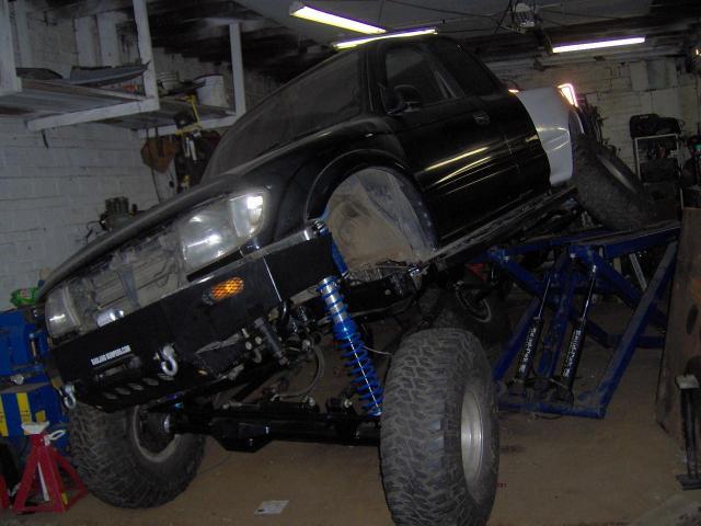 Has any got any ideas or pics of a yota with a set up like this? I am thinking of how to route/set-up the shocks so they clear. Thanx:awesomework: