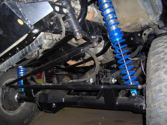 Dont get me wrong, I like leaf springs, but they dont quite cut the mustard for me. With a radius arm setup, just like any linked setup, ya would have no axle wrap and could have really good approach angle. Plus, leafs hate airtime an I like airtime:redneck:.QUOTE]