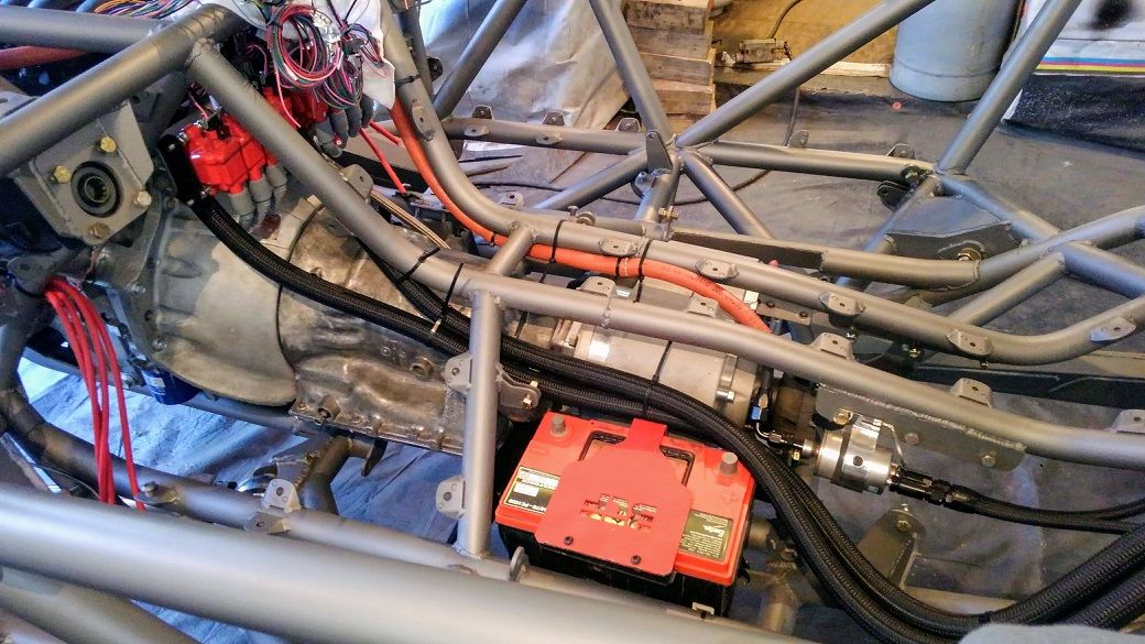 In the interest of fire safety we are covering the fuel and tranny lines with Aeroquip Fire Sleeves.