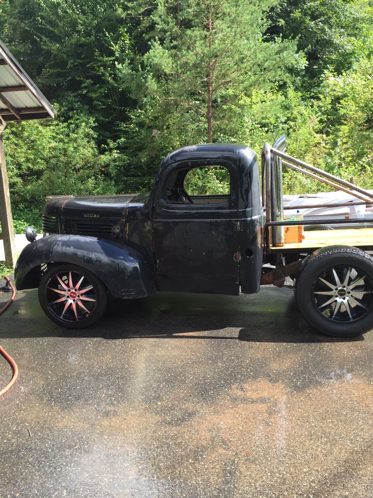 Fun little ratrod we built, It's a 41 dodge cab on a 2wd Toyota frame with no rust 20r motor with new weber carb, long header, and a stack off a semi, 4 speed toyota Trans, new 20 gallon aluminum fuel cell, new 20 inch wheels, 33s in the back 255s in the front, unique aluminum disconnecting steering wheel, nice bench seat, suicide doors, all that is left is wiring lights and gauges which I have them to go with it, i drove it through town about a month ago and just been sitting since ive lost interest in it all the guys got crawlers and rzrs now so wanting to get back in that..
