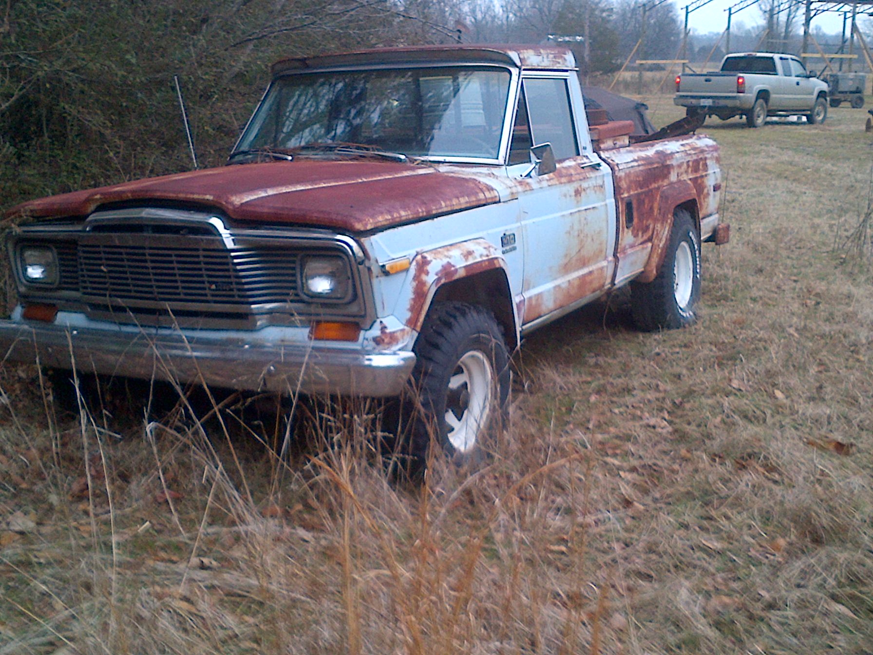 Late 70's J10 Jeep Truck, does not run, have not tried to fix, but spun motor with shot of ether and engine fired, didnt take it any further. 360 engine, auto (quadtrack) offset rear d44 and front d44, track width close to 64". 3.73:1 i think. $500