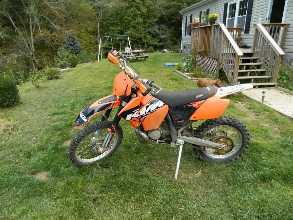 2006 KTM 200XC everything in the engine was replaced using KTM factory parts in June of 2012. Crank, piston, crank bearings, transmission bearings, crank seals, clutch, reeds, steering stem bearings, swingarm bearings, shock linkage bearings. EVERYTHING!! I have a receipt for over $2000 worth of parts and labor! IN JUNE of 2013 new front and rear wheel bearings and seals. New front bridgestone MX51. IN Aug of 2013 New supersprox chain and sprockets, new plastics with 2012 graphics. Bike has 9oz flywheel weight, FMF gnarly pipe, Cycra probends, EE skid plate. Rear tire @ 70%. Willing to trade for Car hauler or equipment trailer 16' or larger. If trailer isn't as nice as the bike be prepared to add cash. If trailer is nicer than the bike I will add cash! Call or text 828-387-6981