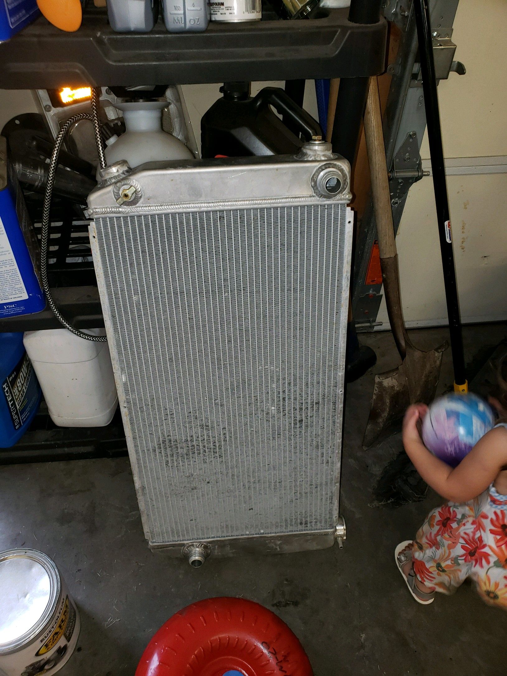 Radiator is like new never ran cause it has a few holes in it. Radiator shop said it could be fixed but Im not willing to run it in my new rig. Priced cheap enough to fix and still be a hundo under new cost. Has 16 an fittings welded on it.