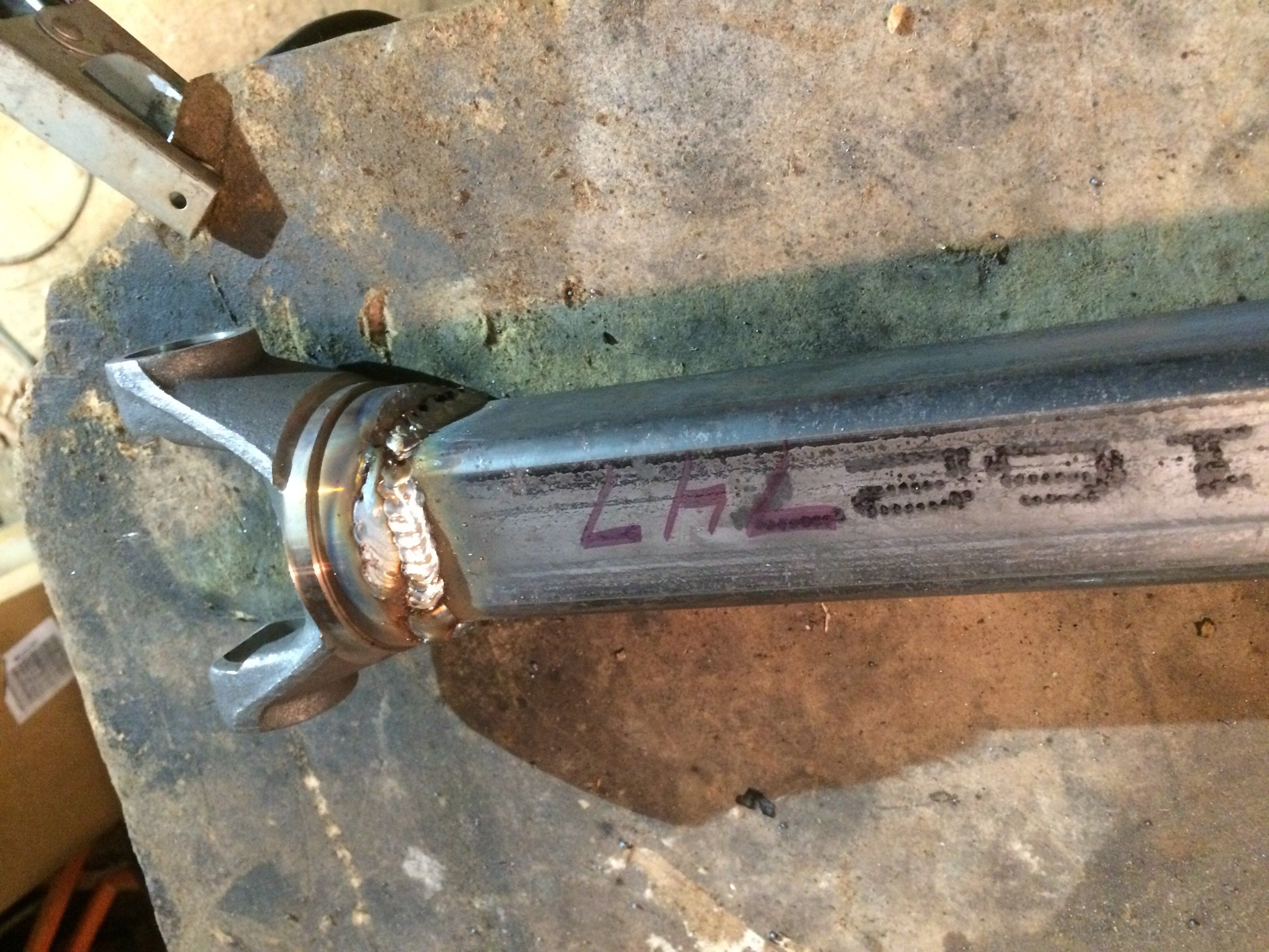 Driveshafts. Yep that's a 1410 yoke welded to 2 x 2 tubing.