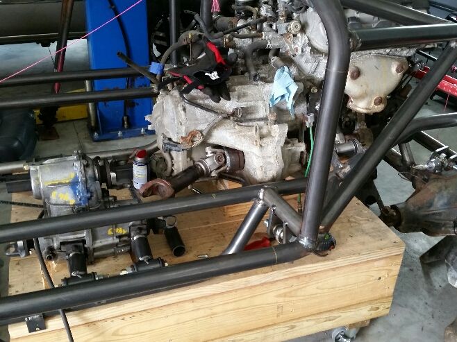 transmission (Honda) is fresh built and the carrier/spiders are welded to send power to the transfer case from one output.