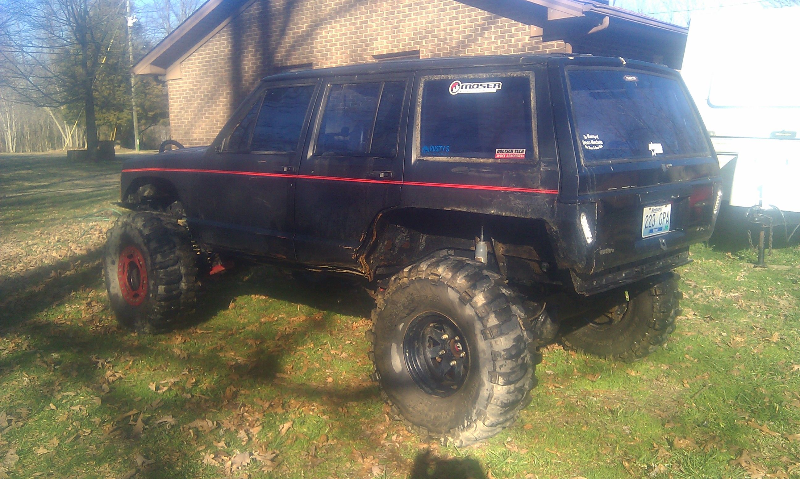 I have a 1987 jeep cherokee for sale it is a good trail jeep and handles very well in the rocks. It has a slip yoke eliminator installed, ford nine rear end with disc brakes, moser axles in rear. Has been tubbed in the rear and fuel tank been moved to the floor pan on the inside. I have stretched the wheel base out and used coil springs in the back with a four link set up. Also have put new four link bars up front with rustys flex joints on one end and bushings on the axle end that is the same for the rear. It has .250 dom tubing for the link bars. Front and rear end are welded. It has a winch but i am going to keep it at this time. Has stock front axle still installed. has 37 inch boggers cut and weld on bead locks on the front. I am selling only to build a tube cage buggy because body is taking a beating. I am new on hardline so hello to everyone. . You can call me at 270 866 0418 located in russell springs ky. Forget to mention it also has dom tubing and heim joints for steering links.