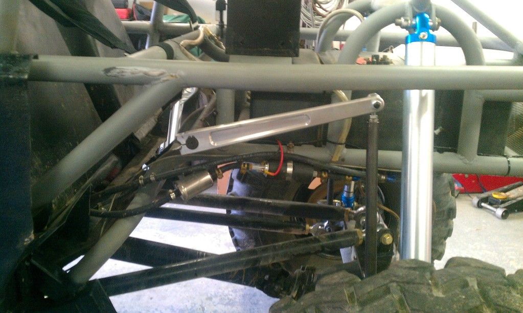16" air shocks front and rear. Sway a way fronts. Profender rears. Rock equipment rear sway bar. Double triangulated four link front and rear from ruffstuff. All 1.25" Heims. All 2" .250 dom links.