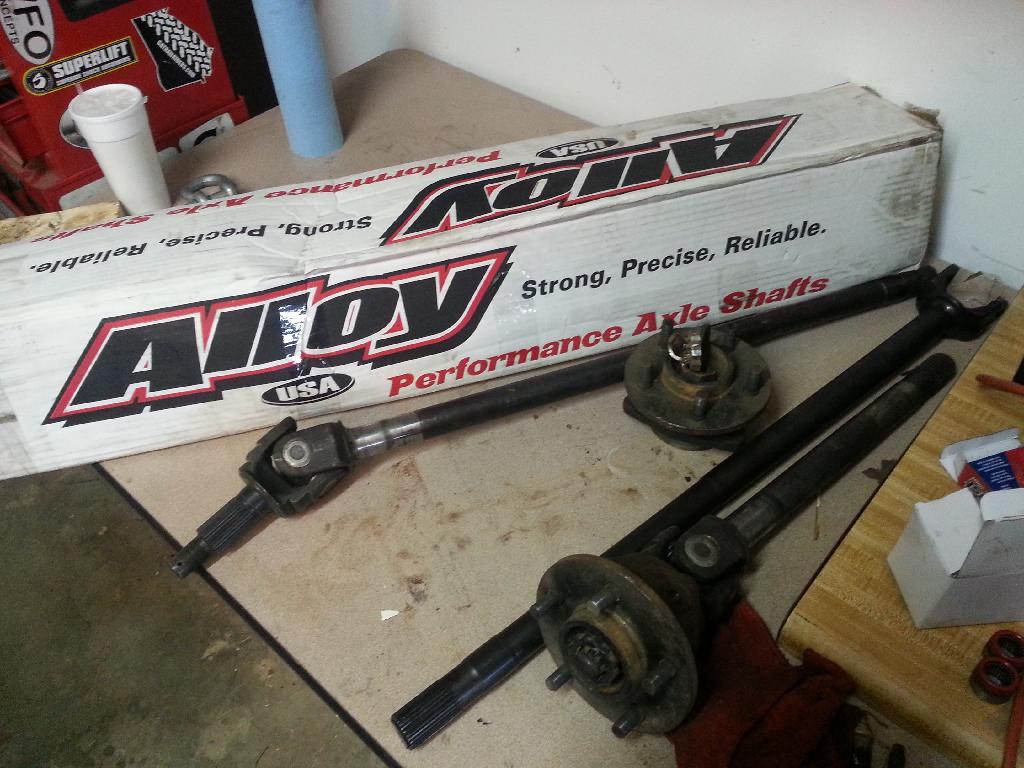 Upgraded to chrome alloy axles in the 44's front and rear after destroying the stockers. Broke the chrome alloy axles got them warrantied and then upgraded to 05 supeduty axles.