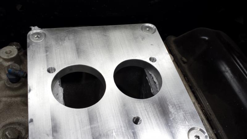 Also the adapter where the bore holes are, the gasket and the sealing surface at the intake are right at the edge of each other. I used a tab of sealer but I am worried down the road due to hardly any clamping force on the gasket it will fail and suck in--time will only tell there..