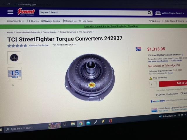 Cam, springs and lifters are sold, I still have for sale a 245mm TCI stall convertor, part number 242937 for 4L60E. Has less than 5k miles on it and in very good condition. $700 If interested leave voicemail or text to 662-587-0034 and I'll get right back with you. North MS