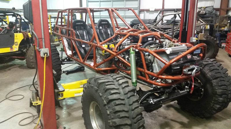 Thought I would post up some pics of a 4 seat buggy project we just finished. Customer brought us an F-Toy chassis on tons, 44s...and a built 468 BB Chevy! We decided the chassis was not going to stand up to the abuse the Big Block was capable of dishing out. So after extensive chassis rework, we belive we have arrived at a capable 4 seat hill killer!