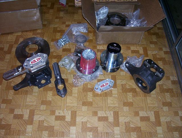 This will be getting the 4.3v6 with t350 full manual with compression braking and a 2100 rpm stall. Looking at going with the stak monster box in a 3speed 5.44 gear setup. Diamond 609 up front with longfield superbirf's, 9" rear with low pinions with ARB's on both and 4.56 gears which will put first gear double low right around 62-1 before the convertor. 18" SAW's in the rear and whatever length I need in the front, with a sway bar in the rear. Links will be 2.25"x.375" lowers and 2"x.25" uppers, 4 link rear and probably a 3 link in the front. 1350 ujoints front and rear with .190 wall drivelines. That is all I can think of now but I will edit later as I think of more BS to feed you.