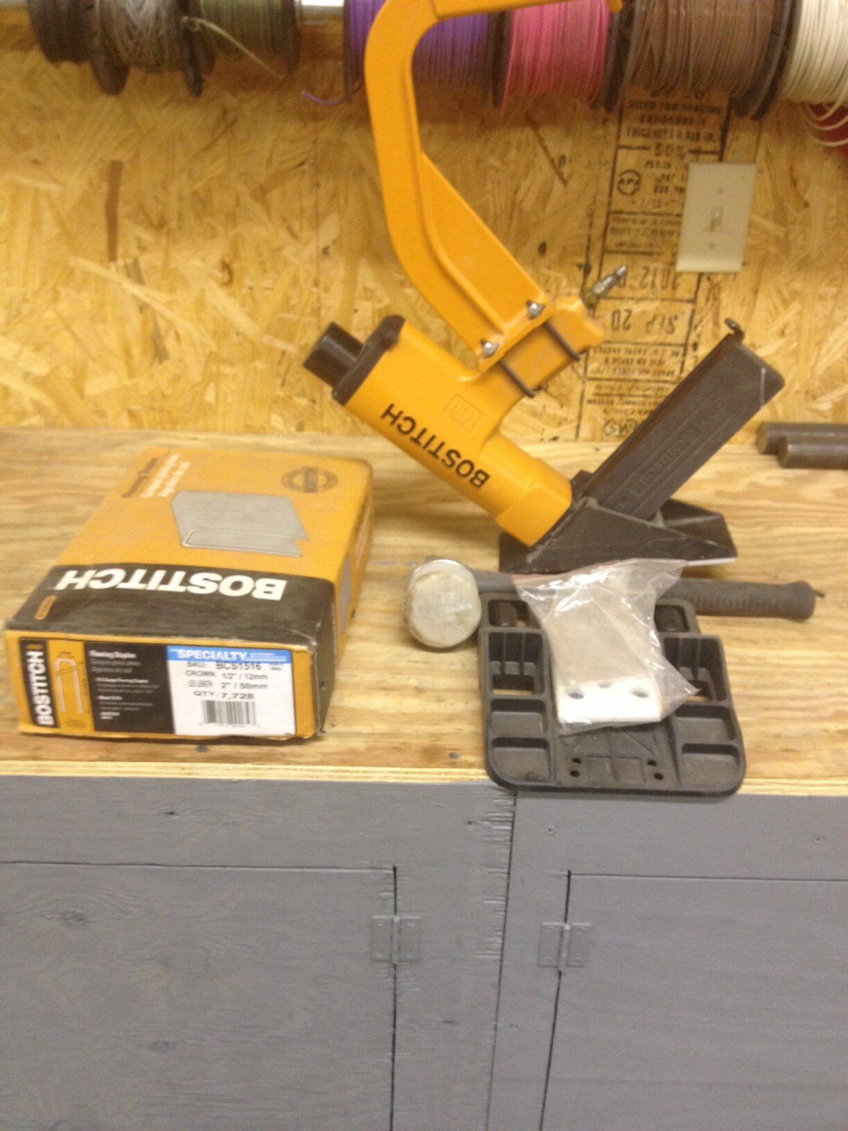 Brand new bostitch hardwood floor nailer only used for 2500 sq ft. Comes with different height pads, hammer and 3/4 box of 2" crown nails 275.00 931-607-6761 Sold
