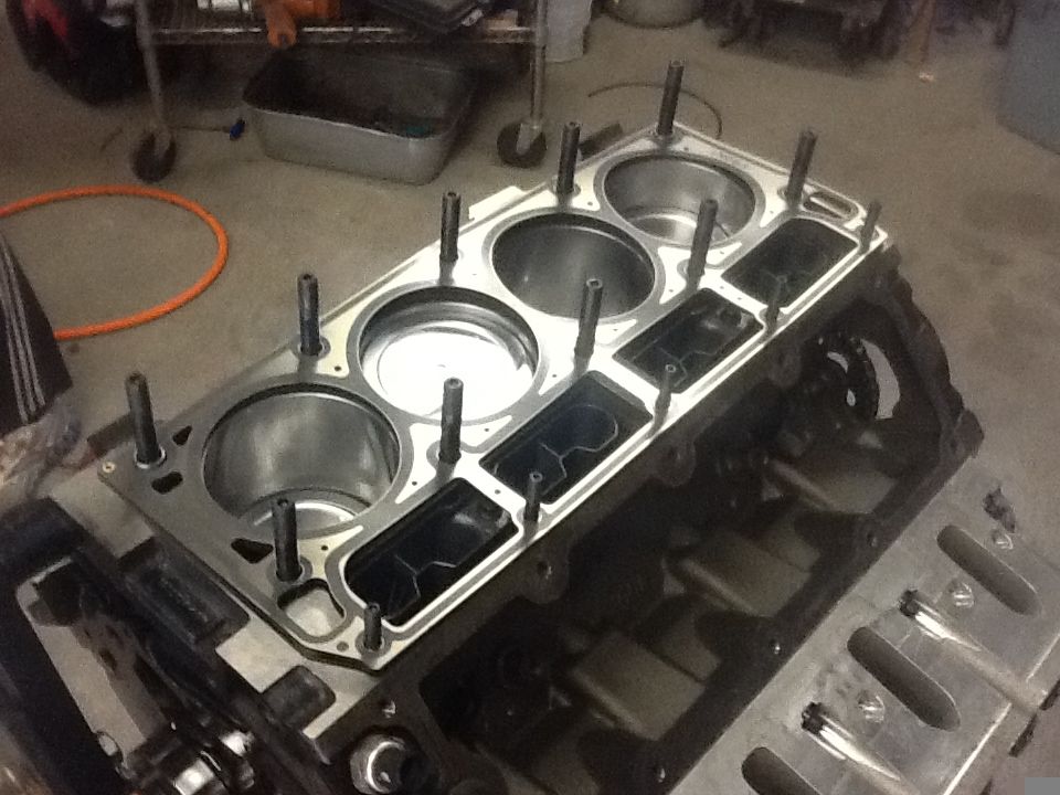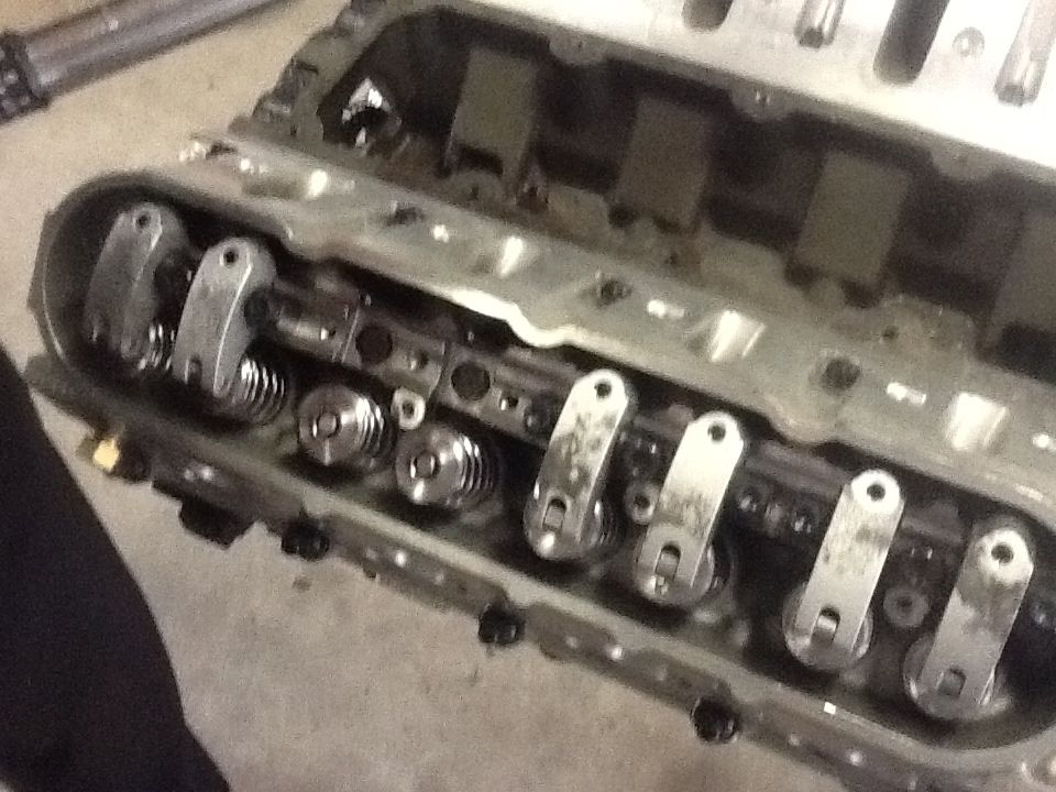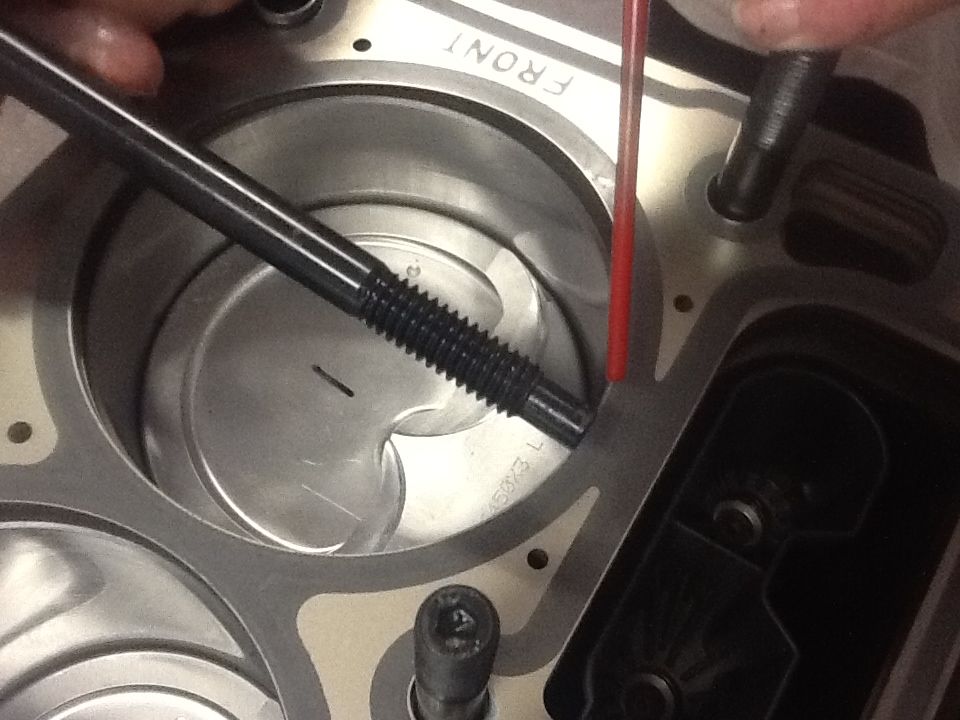 Installing the push rods and roller rockers. This is a Jessel non adjustable bar type system. Cam was brought onto base circle and rockers installed in cylinder firing order. Mounting bar is bolted in place of stock rocker stands, on base circle each set up consisting of one intake and one exhaust rocker is mounted to the bar with one large bolt, TQ 45ft lbs flanked by two smaller bolts TQ 26ft lb.