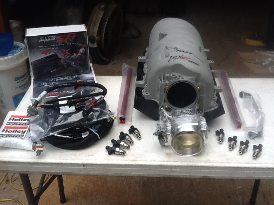 In the deal I made on the Trick Flows was a set of RPC aluminum valve covers. They did not have the bungs for the coil pack mounts. Patooyee put his new TIG welder to work and welded in new bungs we bought on line. Thanks JJ I think these will work great. We took a vote, polish or black paint. They will be painted back black same as the lower part of the intake. I will take pictures of his work next week.