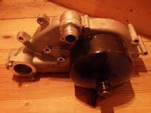 New AC Delco F-Body LS-1 water pump with -16AN fitting welded in and the heater hose connections removed. I can tap the heater hose holes also if desired for plugs. The AN fitting threads are a little rough. The guy that welded it in got into the threads with a sander. A fitting threads onto them with no problem though and the sealing bevel is fine. I have went a different route belt setup and no longer need this.