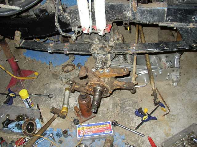 Got a little bit more done today. Springs back together and in with the new add a leaf. should give me about 2 more inches. Started changing the steering knuckles and putting the high steer on:clappy: