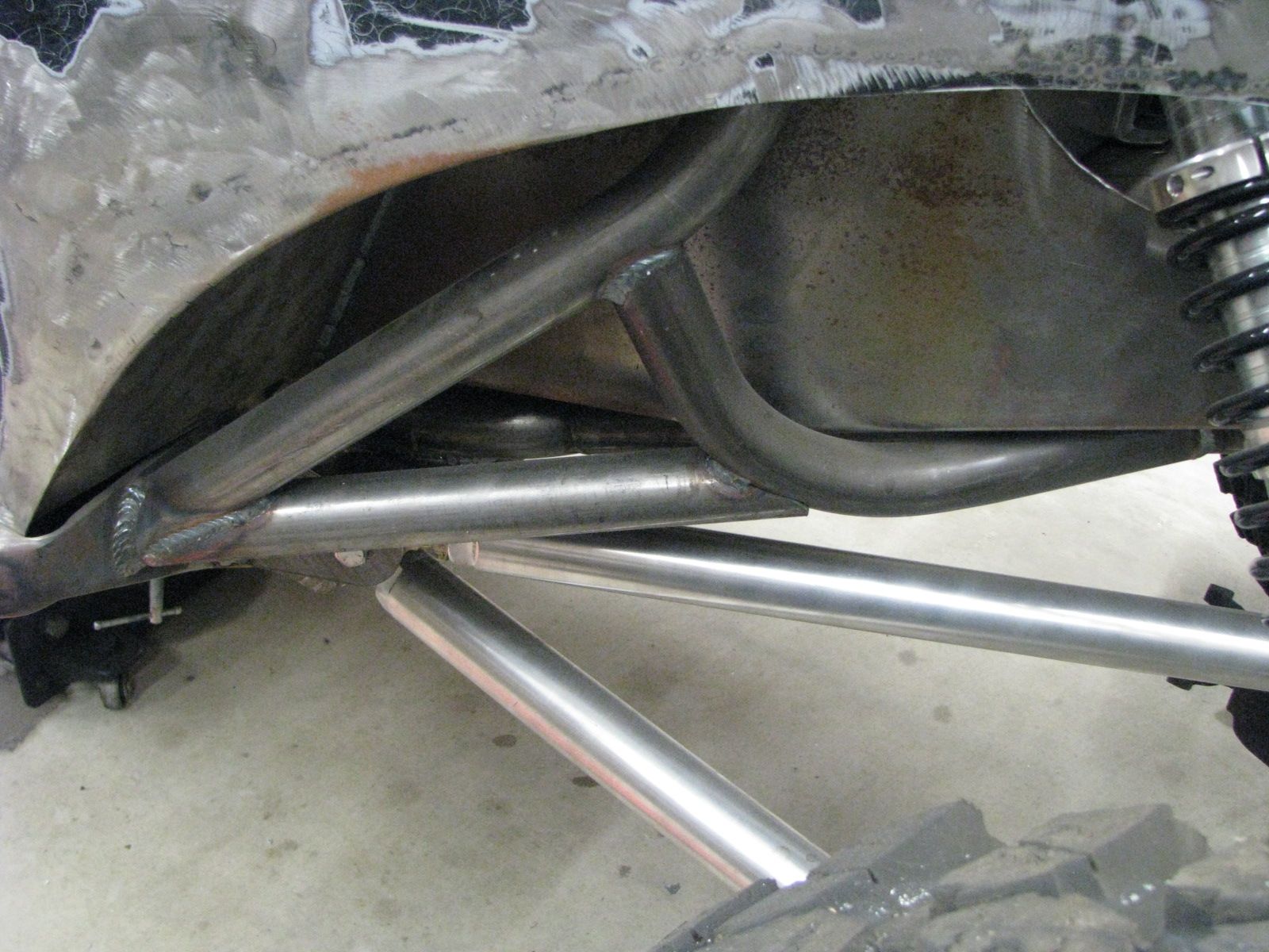 the motor is a 383 roller ,scat bottom end ,flat tops ,brodix heads and fast fuel injection.turbo 350 trany ,3;8 -1 atlas.dana 60 front ,70 rear . when we started this project i wanted something different , stephen has taken it to a whole nother level. this was suppose to be a move my rear end back on the stock frame. glad i let him talk me into doing this.