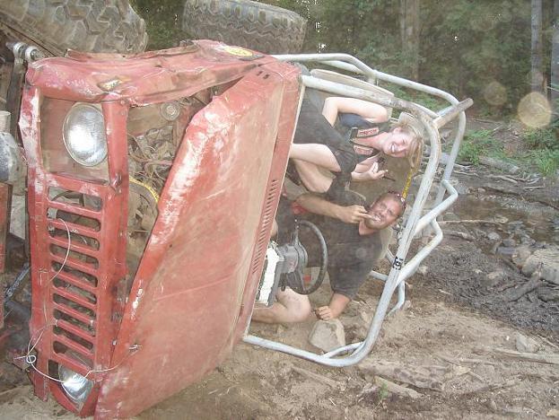since i dont have pics of what it looks like currently its a suzuki sj410 that ive cut the body off from the firewall back and have caged it all, toy axles 5.29 welded rear warn hubs, yj springs front and rear, 4.9.1 in tcase, use to have a 1.0 liter engine in it swaped in a 1.3, header, ford motorcraft weber carb, accel coil, gm alt, ac pump for on board air fire extinguisher for tank, celica powere steerong box, custom over the top steering made with tractor ends, 5 point harnesses, 12 gallon gas tank. 1.3 master brake (originaly didnt have a booster it was all me brakeing) and thats about it