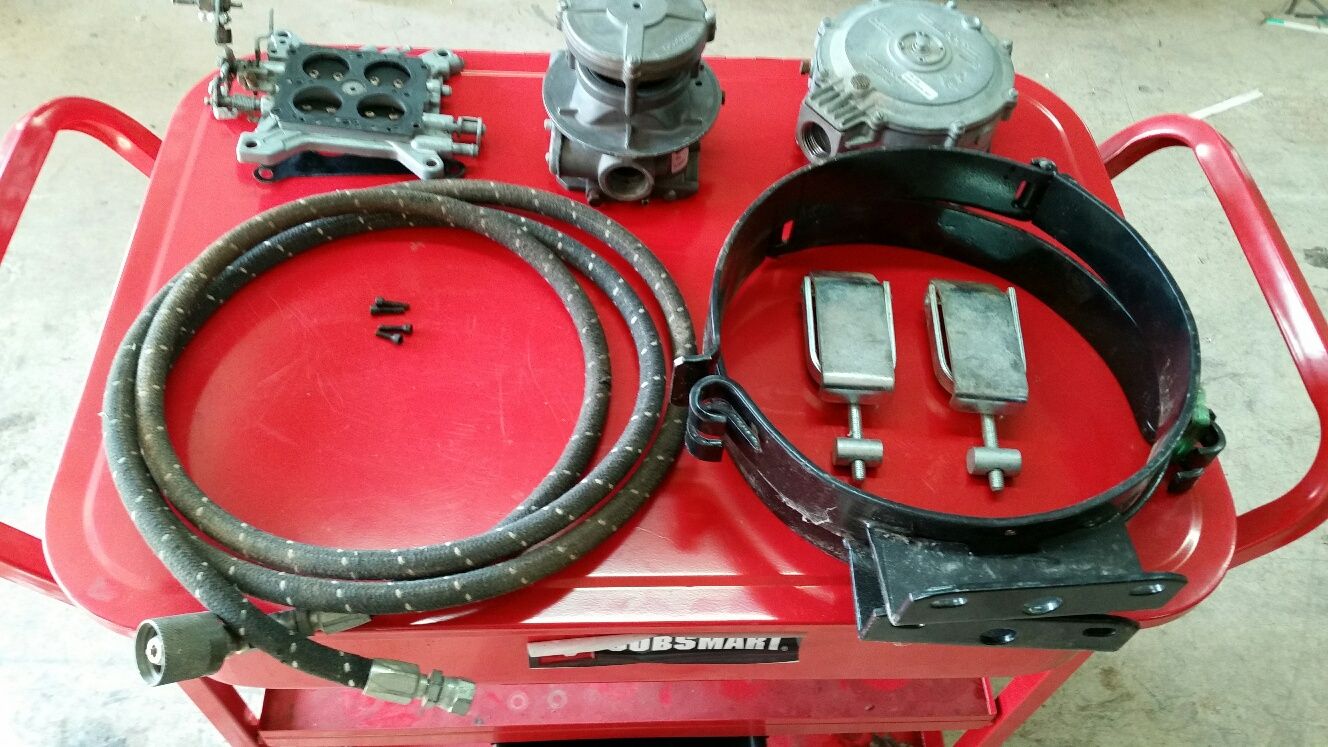 For sale used propane kit for V8. Kit includes impco 425 mixer, model e evaporator, throttle plate, 10' high pressure hose w / fittings, and a pair of tank brackets. The kit was used for the last 2 years and have maybe 10 rides on it. Will include two steel tanks if picked up locally. Located in Nashville, TN. Call or text Jesse 6152072711. $450 obo