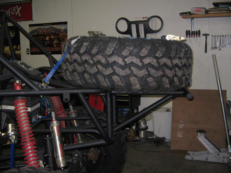 I got some things done in the last couple of days. Tire mount built out of .120 wall chromoly and some 5/8 hiems ends i had laying around. Just been slowly putting things back on such as coilovers, battery, radiator, drivelines, and much much more.