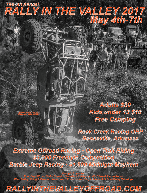 The event will take place in Booneville, Arkansas (southeast of Fort Smith) at Rock Creek Racing and Recreation ORP on May 4-7, 2017