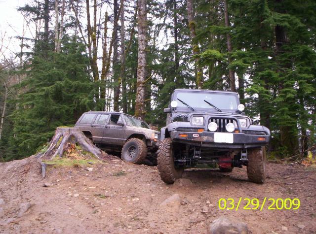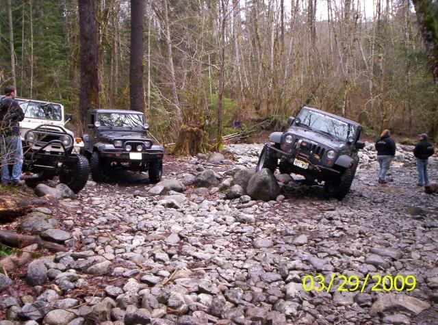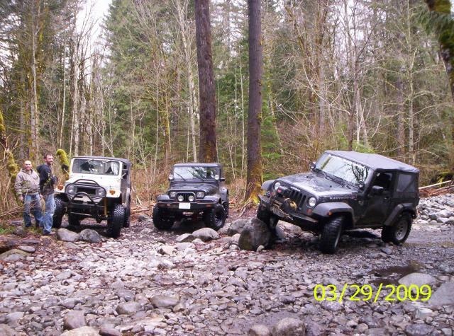 My black YJ Heep...Nick's (NDFlames) flat black Cherokee on 35"s and Tony in his super sano white FJ40. If you see us...honk...wave...flip us off...whatever.