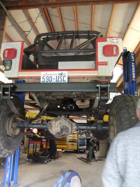 The winch Kevin is talking about is the one is set in place in the shop to show fitment. However, we both forgot it was there. He made a couple of relatively high speed passes up and down the drive. He then started to drive again and the winch fell off. DUH!!!