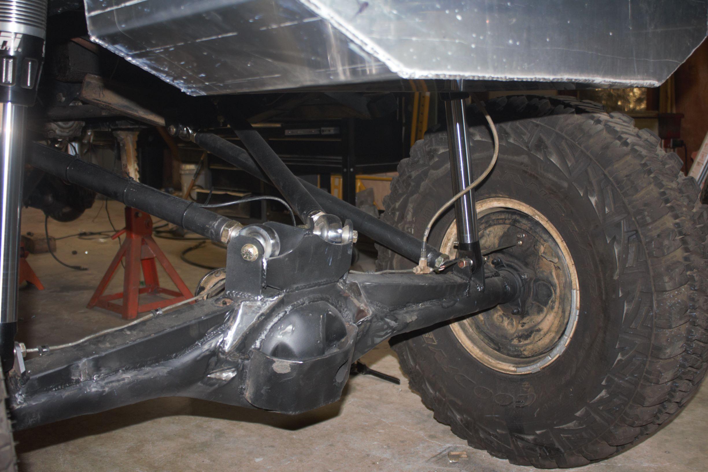 aaand, hopefully this will be the last stupid problem for a while. I had to move my axle back about an inch because apparently I dont know how to use a tape measure. My steering box is too close, and the pitman arm hits the tie rod. But, now my upper link mount hits the oil pan at full bump. Hence: