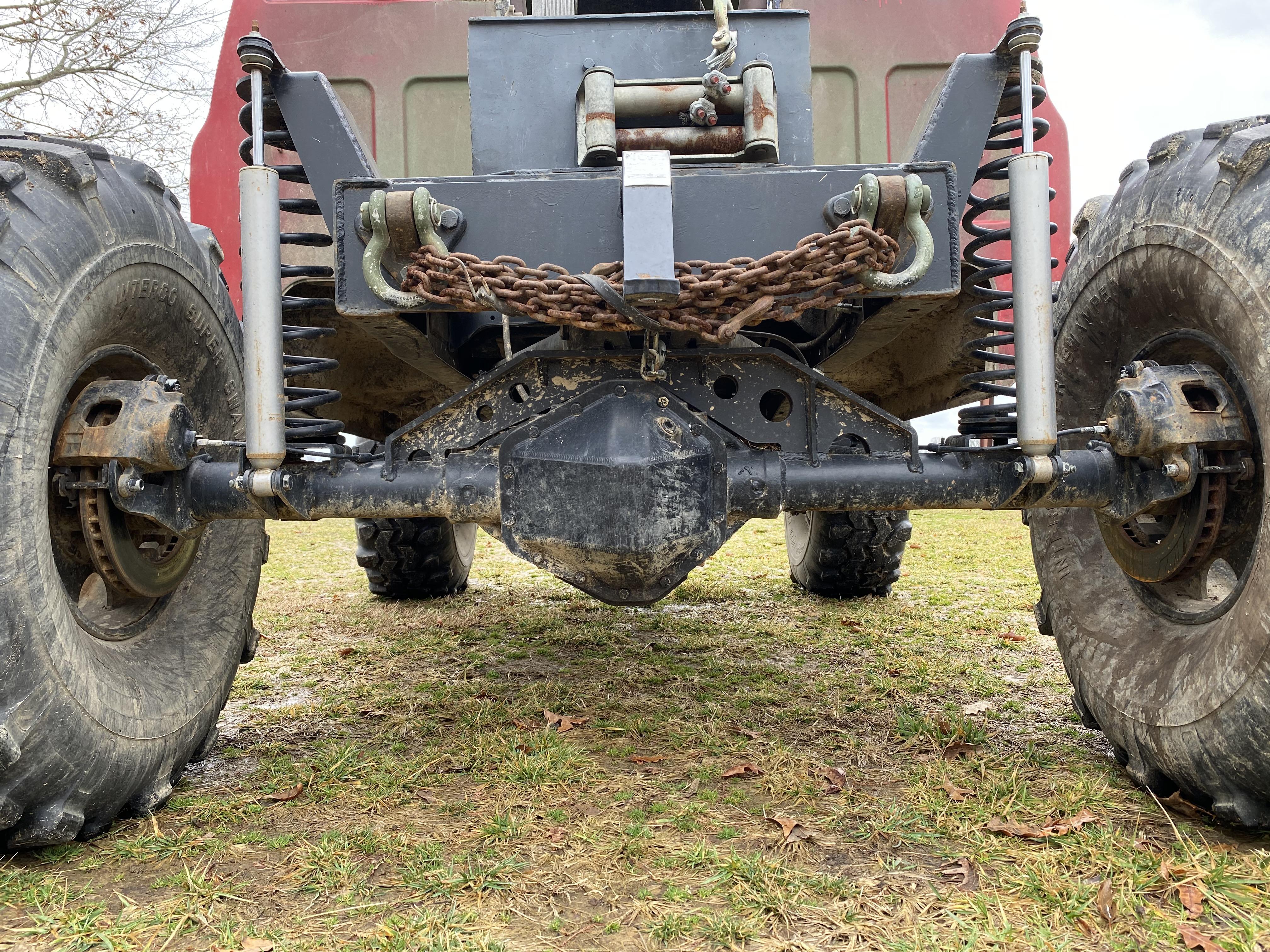 14 bolt rear axle, locked, disk brakes, trussed, welded tubes