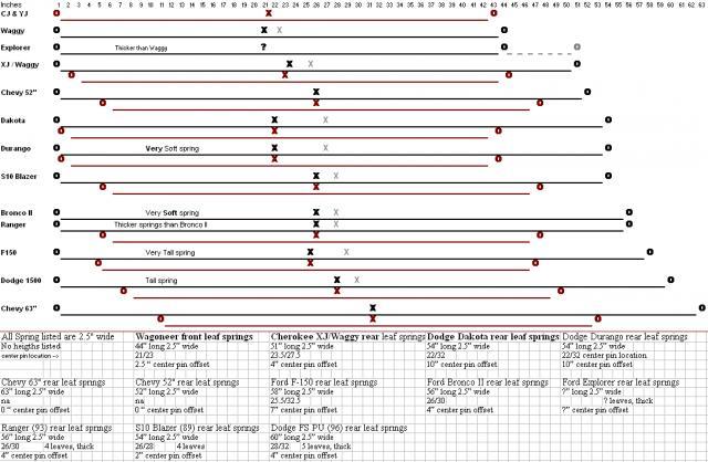 I am not sure where to find it now, but when we were deciding which springs to put under my rig, we found a table on the Internet that showed the length, offset, etc., of basically every leaf spring out there.
