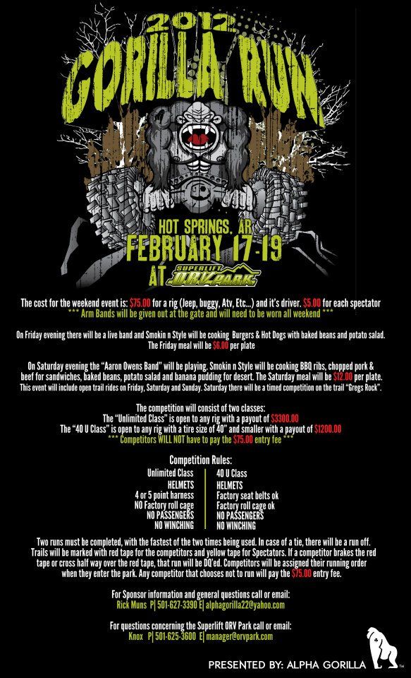 Re: First Annual Gorilla Run @ Superlift in Hot Springs AR FEB. 17-19
