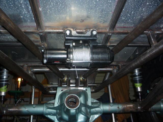 was gonna mount the little rear winch on the diff housing but it would not convieniently (sp?) fit between the top links. So its now in its happy home. will need a pully for the rear suck down attachment.