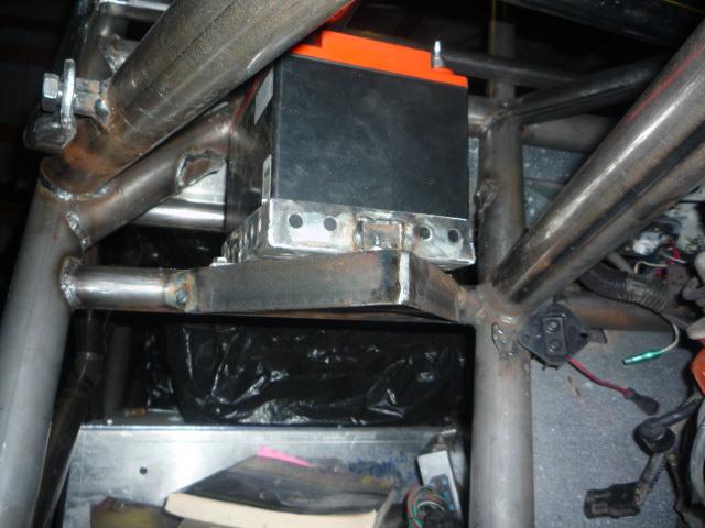 New battery box. its kinda cool as it has a built in hold down by sliding under the angle bar. then when the three bolts are added at is completely harnessed, sucker dont move.