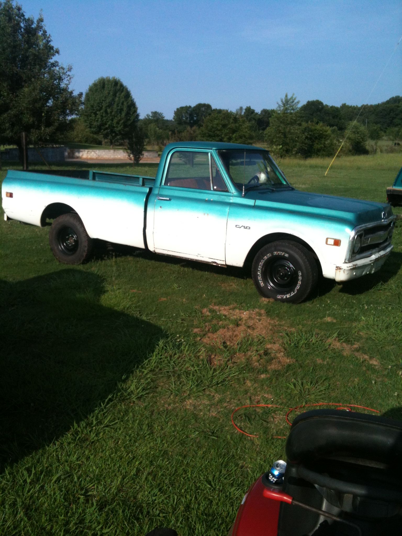 1969 chevy c-10 long box 350 v8 with eldbrock alum intake, eldbrock 600 carb with elect choke, eldrbock valve covers, truck has been converted to 5 lug front with disk brakes but still 6 lug rear. turbo 400 trans. 15 gal alum. fuel cell in bed. fuel tank it truck bad rusty so put fuel cell in bed. old truck runs and drives good but needs a little fine tuning on timing. long tube headers w/ flomasters mufflers, 90% tred on goodyear wranglers. truck has common rust in floor and cab. rockers have been replaced but crappy job, can be saved and fixed right. bought truck off of ebay from tn and found new project so time to sell. truck would make a great rat rod. my plans were to hot rod black truck and drive it! 2000 or obo! thanks! can txt photos anytime! jaydee 256-310-7725