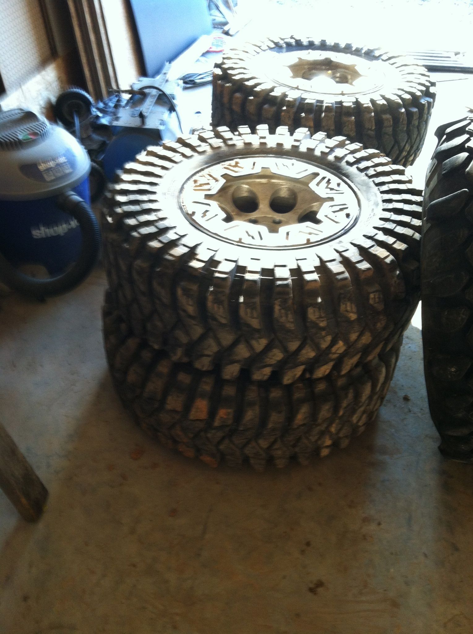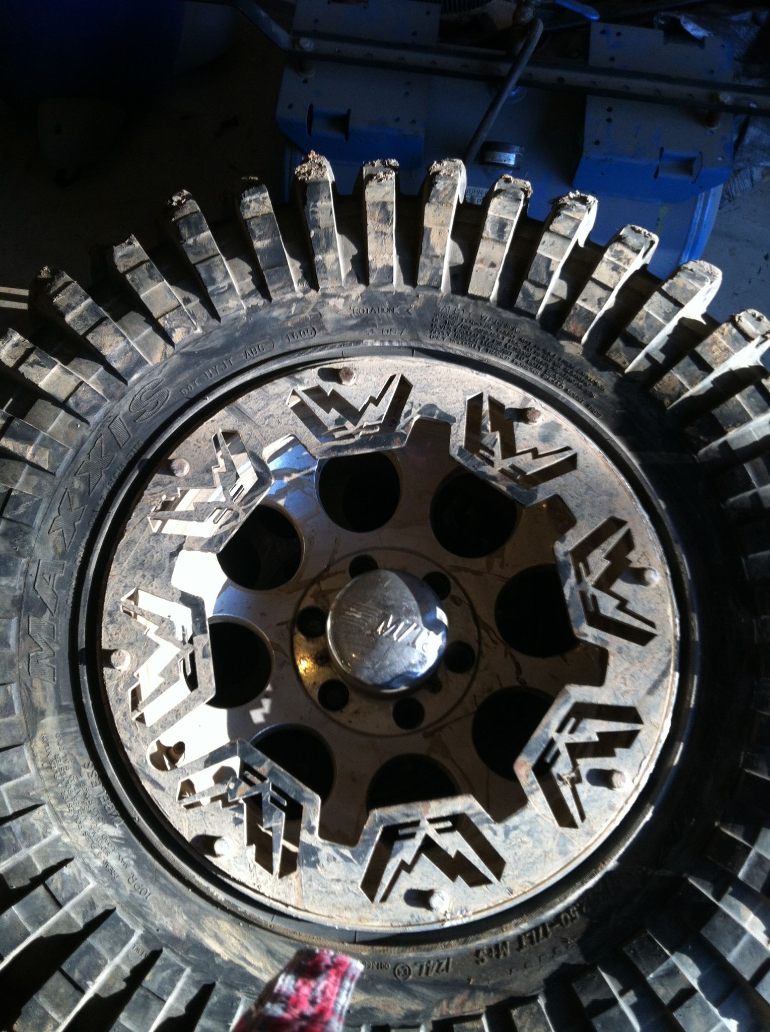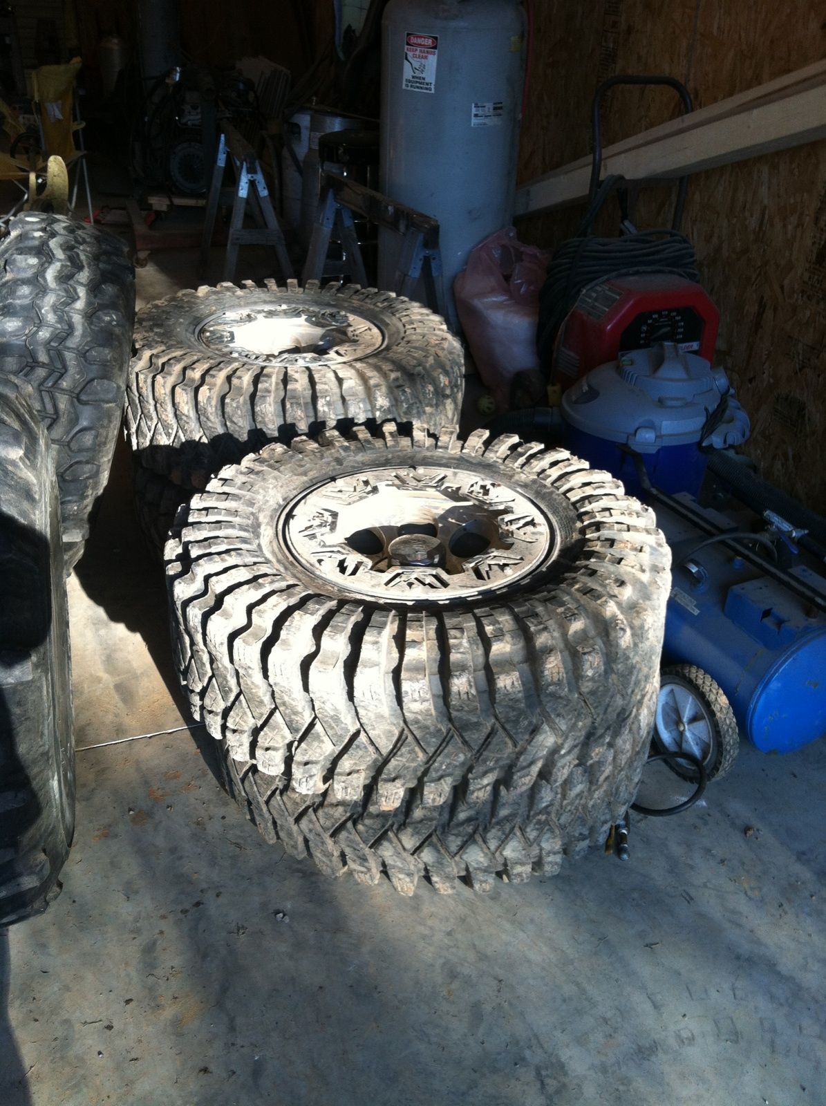 37 maxxis treps on 17" mickey Thompson wheels with rock guards not bead locks, tires have been regrooved have 15/32nds to 18/32nds tread on them and lugs still have a lot of meat left to be grooved more. Toyota lug pattern take $1200 obo txt 4237189462 if interested located in south pittsburg tn