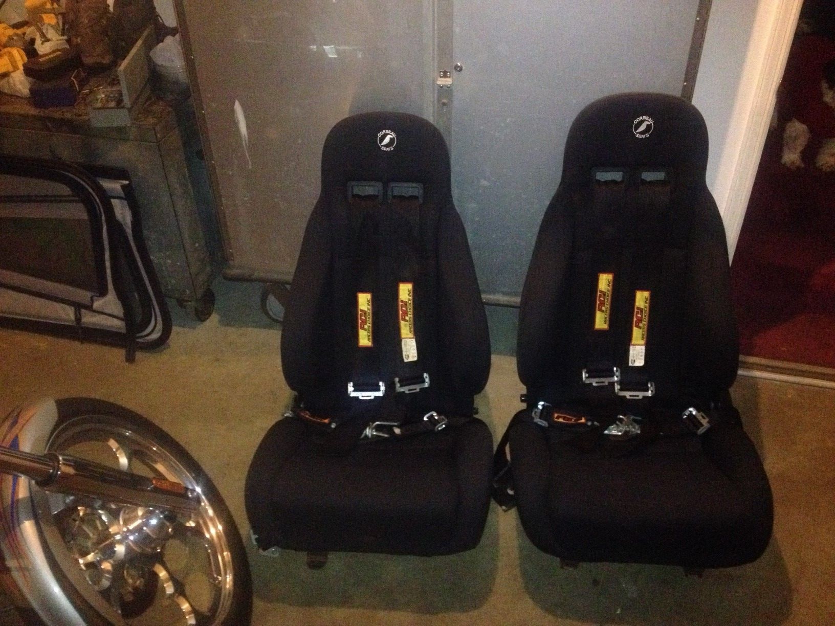 All I know about the seats they came out of a buggy that was built about 4 or 5 years ago. The buggy was just being finished when the tornado came through Fultondale Alabama a few years back. Buggy was riding maybe 5 or 6 rides at most then parked and taken apart for painting and never finished. They are not eating any dust sitting in basement. They are in good condition, seat belts, sliding tracks and covers.