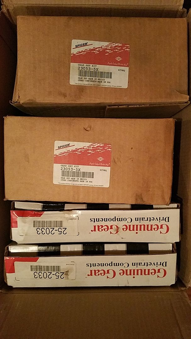 Spicer Dana 44 ring & pinion - 4.89 ratio - Model # 23053-5X - (2-sets) $100 each. Also, Genuine Gear minor install kits - Model # 25-2033 - (2-sets) $10 each. Both ring & pinion and minor install kits are "new & never installed".