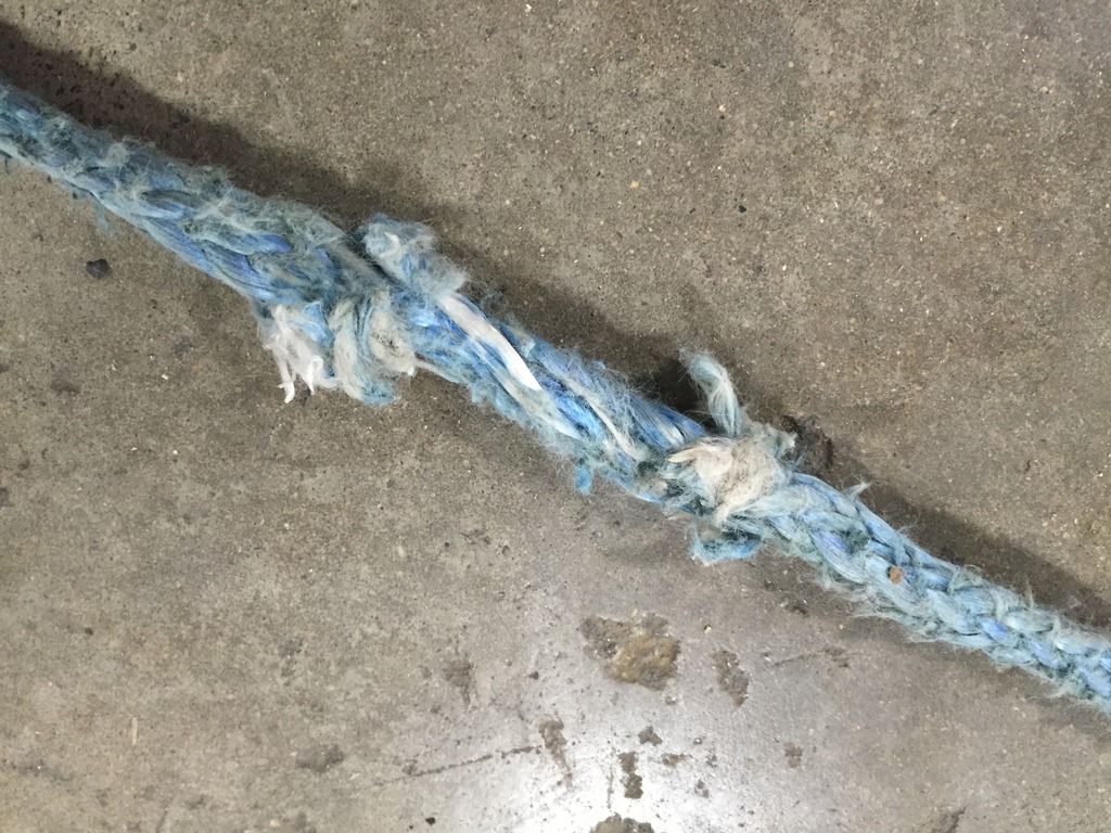 It is used. Has a small chaffed spot about 25ft from the hook (see pic)