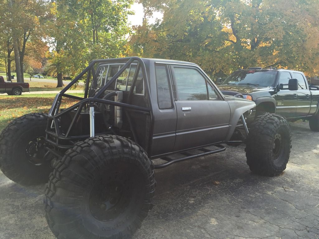 Body: 85 Toyota extra cab very good shape has a little rust in drivers side floorboard when I removed the carpet, interior is gutted has alluminum dash panel with fused ignition and switch panel , racing seats and harnesses front fenders and hood are bobbed , dent in pass. side door and vent window busted out