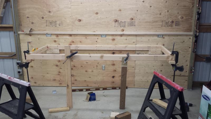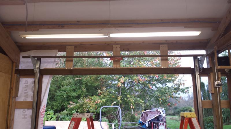 Let the door fun begin--this is the nerve racking part of it all for me. I spent a good hour reading the "what to do" info and once I took some measurements and clamped the rails into place it started to make sense. As soon as I know the rails are right I need to make some upper support brackets and then the door will be ready to hang...