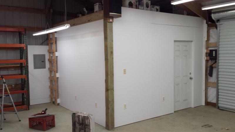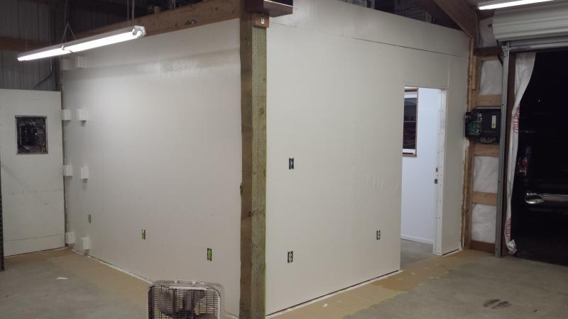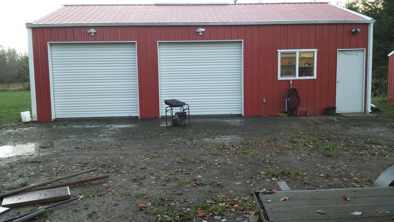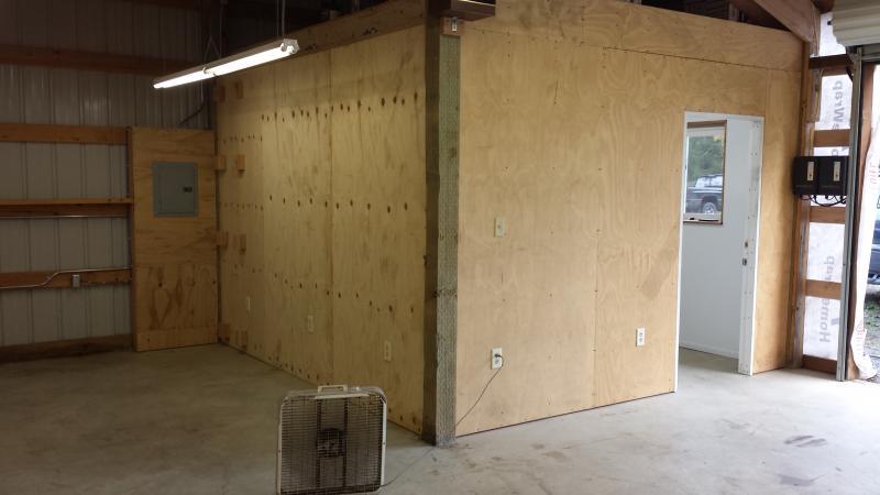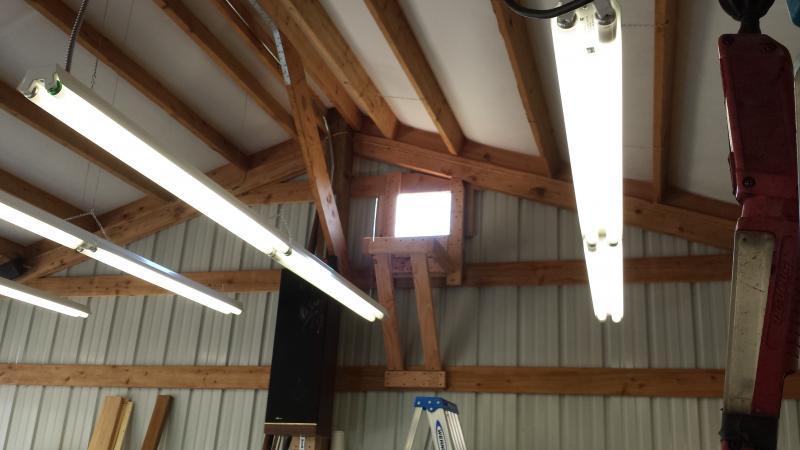 I started one of the last bigger projects this morning--the exhaust fan that will sit just below the roof line near the center. It actually went quicker than I thought and it was a lil nerve racking cutting a big hole in the side of my shop,lol.