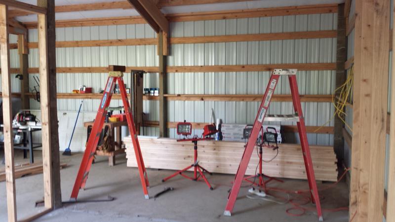 So I busted butt today. I was able to get the ceiling/storage loft done. I ended up going with 2x8's on 12" centers. Once it was all tied together it made the whole mess pretty rock solid. I should be able to store some decent weight up there now. I dunno if it was right/wrong but I also ran 2x8's between the the main 2x8's down the center. It took all of the wobble out of the 2x8's and I did them from the top and wasn't too bad being as how I am scared of heights,lol.